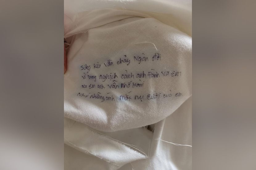 U unutrašnjem delu jastuka, skriveno od svih pogleda, stajala je poruka na vijetnamskom. Neobična. Duga. Pisana kao da je autoru bilo bitno da je baš tu ostavi. I da je možda niko nikada neće pročitati. Sanders je za Newsweek rekao: