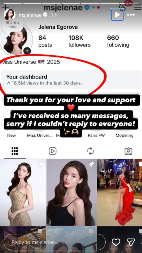 U poslednjih nekoliko nedelja njen Instagram nalog zabeležio je više od 16 miliona pregleda. Ovaj broj odražava kako viralnu pažnju na društvenim mrežama, tako i pojedinačne prikaze objava u kojima se zahvaljuje publici za podršku i poziva je da ostane uz nju do velikog takmičenja.