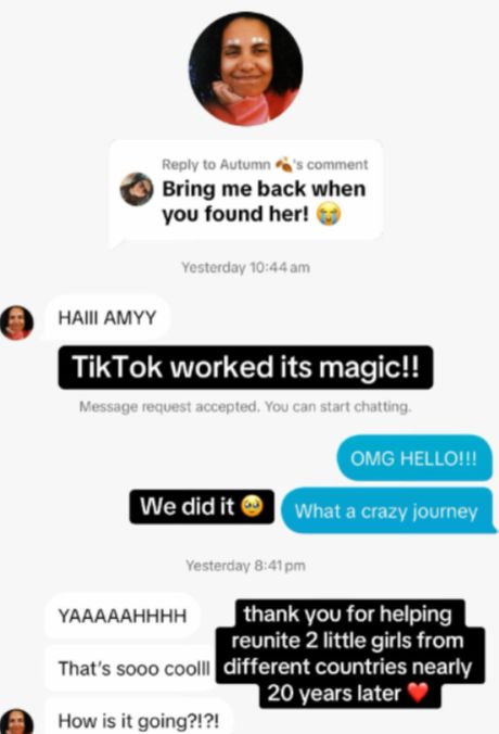 „TikTok je uradio svoju magiju! Uspelo je. Hvala svima koji su pomogli da se dve devojčice iz različitih zemalja ponovo pronađu skoro 20 godina kasnije“, napisala je.