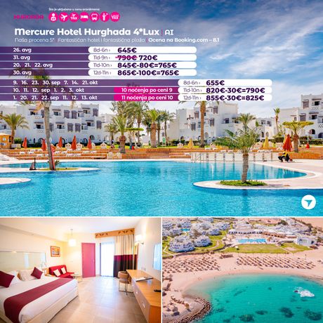 Vreme je idealno da posetite Hurgadu, a kao turoperator br. 1 po broju putnika iz regiona poslednjih 10 godina, za svoje putnike smo na osnovu dugogodišnjeg iskustva izdvojili iz ponude BEST BUY hotele koji imaju najbolji odnos cene i kvalitet.