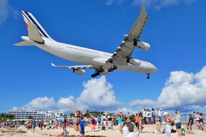 Posebno je zanimljivo posmatrati ljude na plaži kada neki avion počne da se prizemljuje. Sasvim opravdano im deluje kao de leti pravo prema njima, iako to naravno nije tako.