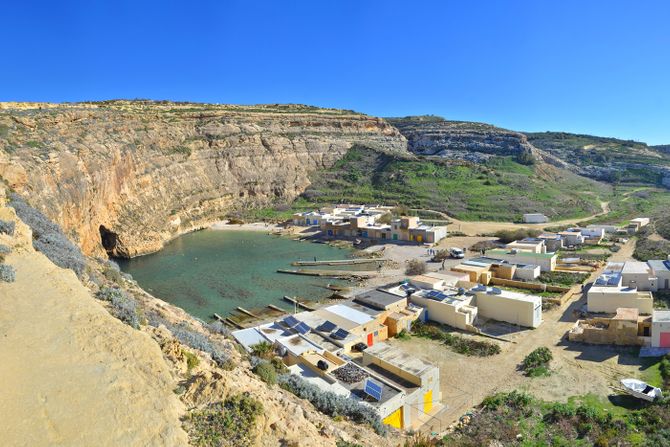 Sakrivena među zelenim padinama, San Blas Bay odiše intimnošću i mirom. Do nje vodi strmija staza, ali upravo ta izolacija čuva njen karakter. Tirkizna voda, tišina i prirodno okruženje čine je savršenim mestom za one koji žele da se potpuno isključe i prepuste ritmu ostrva. Uvale oko Dwejre nude sasvim drugačije iskustvo, sirovu, dramatičnu lepotu i jedne od najboljih lokacija za ronjenje na Gozu.