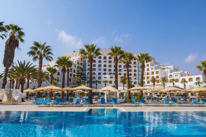U samom srcu ovog letovališta smešten je Marhaba Palace 5★, hotel visoke kategorije koji radi tokom cele godine i gostima pruža boravak u neposrednoj blizini mora. Hotel je poslednji put renoviran u periodu 2019/2020. godine i raspolaže sa ukupno 332 smeštajne jedinice, uključujući i 2 junior suite-a sa pogledom na baštu, bazen ili plažu, u zavisnosti od tipa sobe. Gostima su, pored glavnog restorana, na raspolaganju i à la carte restoran, Bar salon sa terasom, kao i Moorish bar, Pool bar, Beach bar i American bar tokom sezone.
