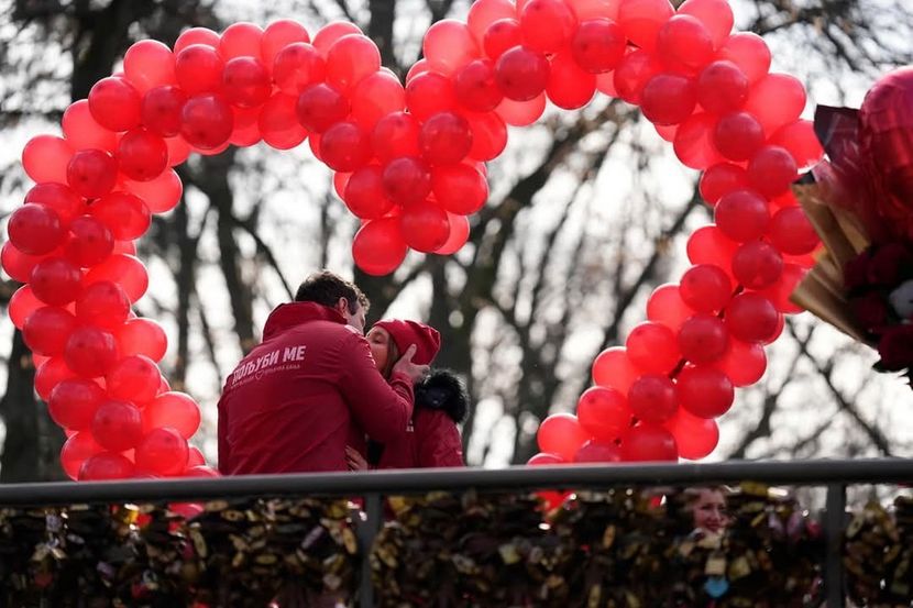 Kako drugačije slaviti ovo, često karakterisano kao najuzvišenije, ali i najlepše osećanje, nego uz poljubac. I gde to bolje učiniti nego na Mostu ljubavi.