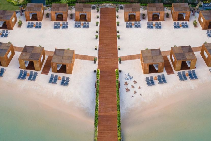 Poseban utisak ostavlja prostrana plaža sa svetlim peskom, duga oko 650 metara, kao i dodatni privatni deo plaže od 100 metara namenjen gostima vila. Uz plažu se nalaze i dve platforme za sunčanje, dok su ležaljke, suncobrani i peškiri dostupni bez doplate, što dodatno doprinosi osećaju komfora i bezbrižnog odmora.