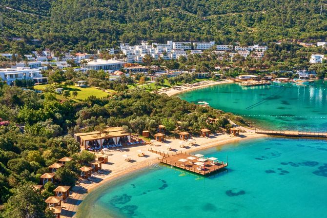 Smešten u mestu Torba, nadomak centra Bodruma, hotel zauzima prostran kompleks okružen zelenilom i morem, pružajući gostima osećaj izdvojenosti, ali i odličnu povezanost sa gradskim sadržajima. Poseban utisak ostavlja njegova uređena peščana plaža sa plavom zastavicom, dužine oko 200 metara, kao i ponton namenjen odraslima, koji dodatno naglašava osećaj mira i ekskluzivnosti.